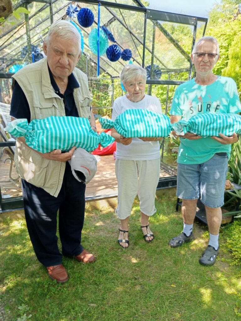 W lipcu i sierpniu udało nam się spotkać w plenerze całą naszą gromadką. Tradycyjnie świętowaliśmy dni naszych wakacyjnych solenizantów: dwóch Krysi, Ani, Steni, Reginy i Stefana. Pogoda płatała nam figle – od upałów po ulewne deszcze – ale nic nie zakłóciło naszej radości ze wspólnego przebywania i biesiadowania.
